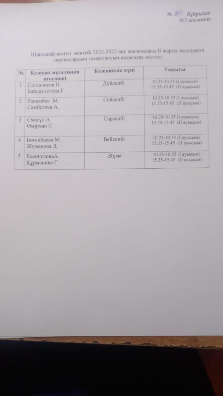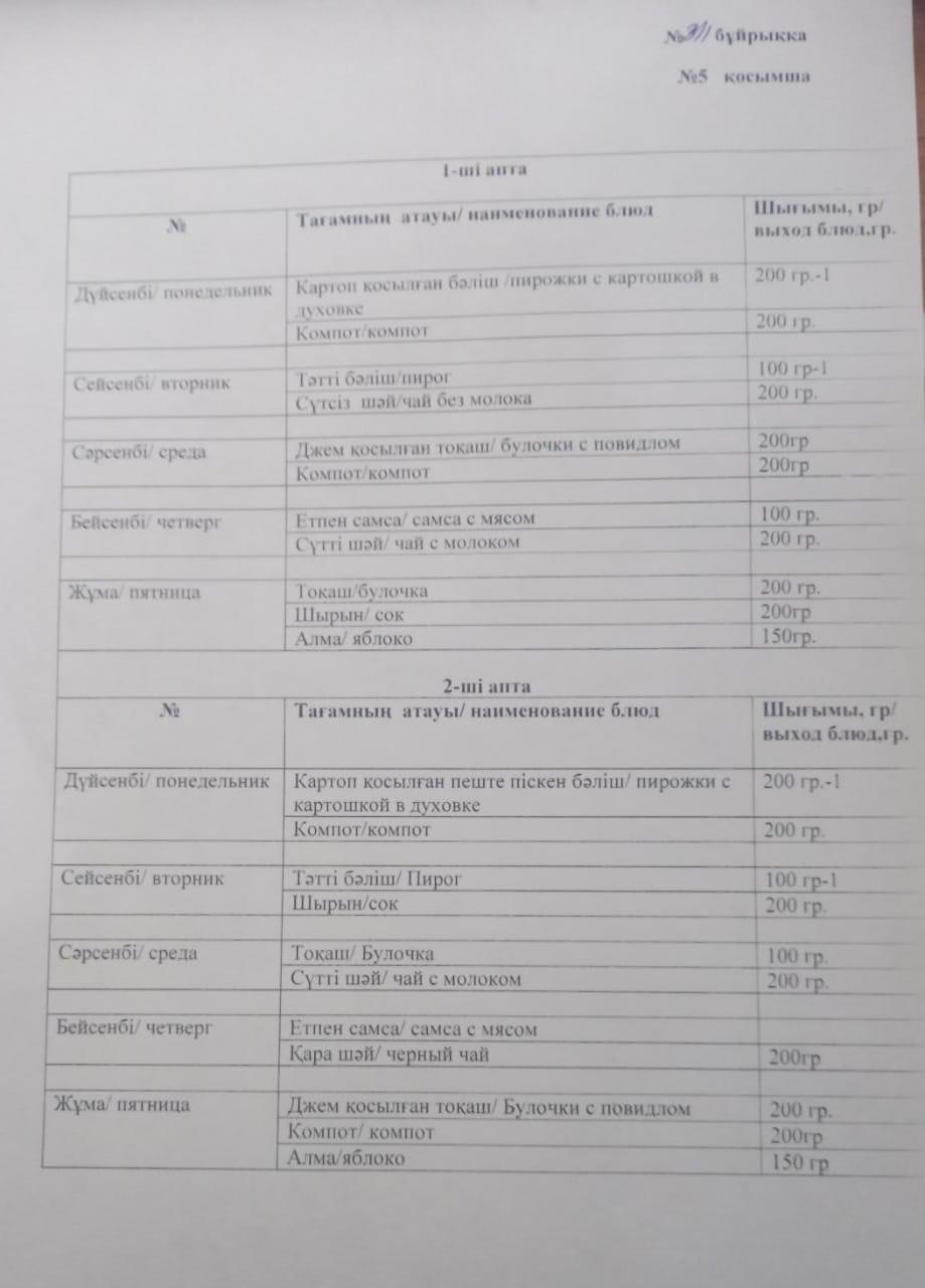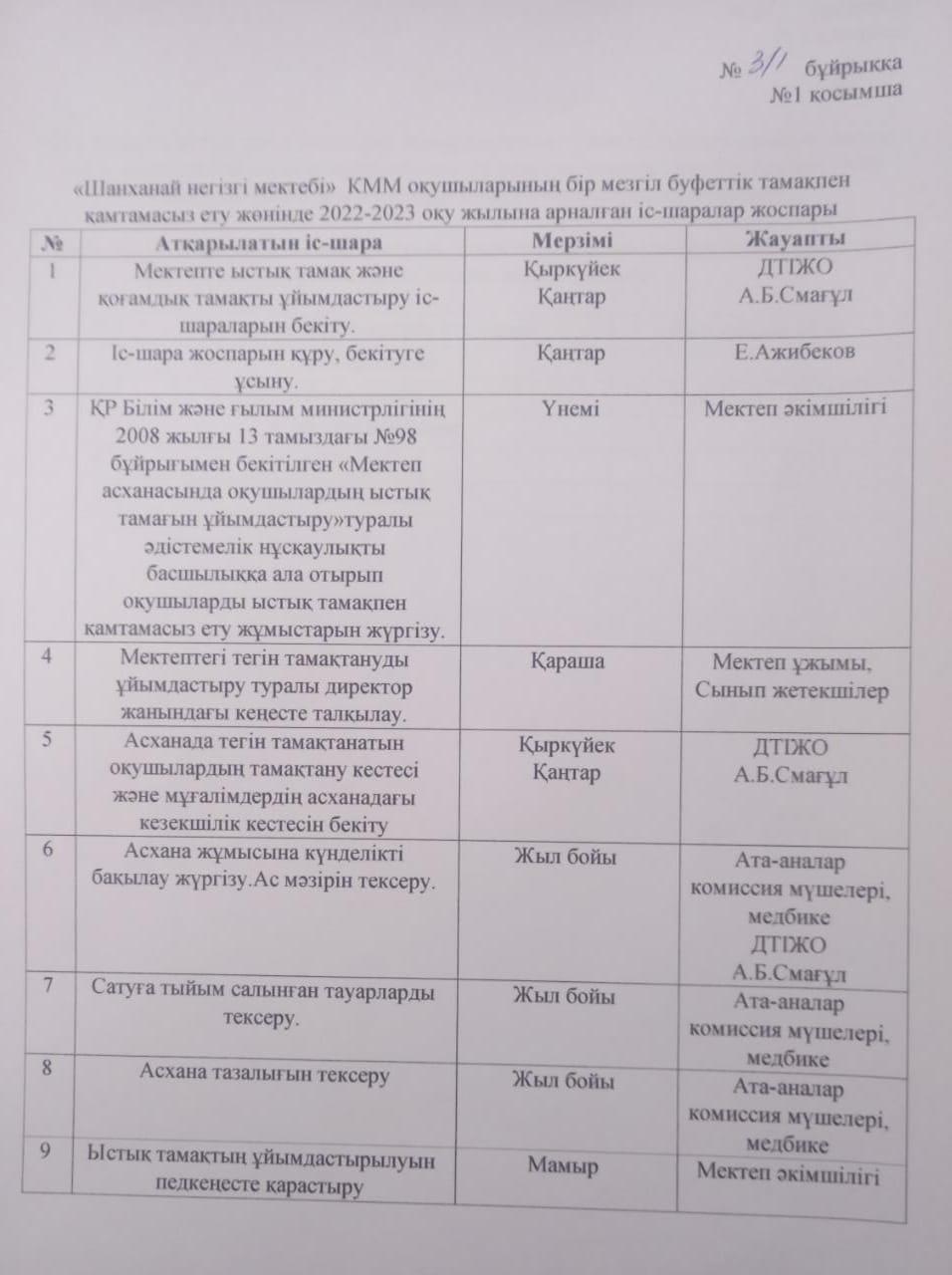 09 январь 2023 0 1 2 3 4 5 2022-2023 оқу жылының ІІ жартыжылдық бойынша оқушыларды тамақтандыруды ұйымдастыру туралы бұйрық
