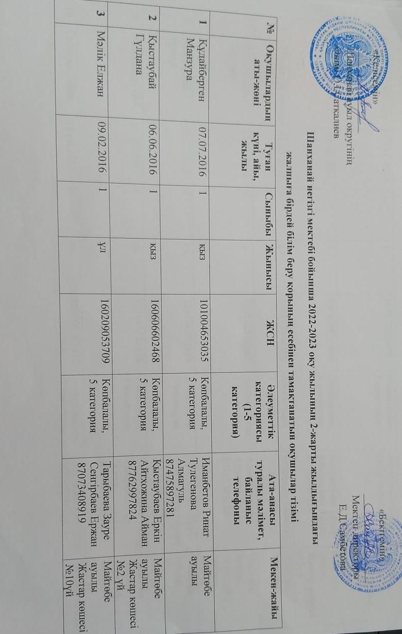 09 январь 2023 0 1 2 3 4 5 2022-2023 оқу жылының ІІ жартжылдығындағы ЖББҚ есебінен тамақтанатын оқушылар тізімі